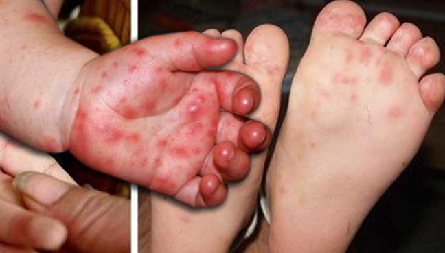 O QUE É – A doença ‘mão-pé-boca’ se caracteriza por manchas avermelhadas na boca, amídalas e faringe, além de erupções de pequenas bolhas nas palmas das mãos e plantas dos pés, nádegas e região genital. A febre alta acompanha esses sintomas. Contagiosa, a síndrome pode acometer também adultos, mas é mais comum em crianças até 5 anos. A doença é causada pelo vírus normalmente encontrado no sistema digestivo.