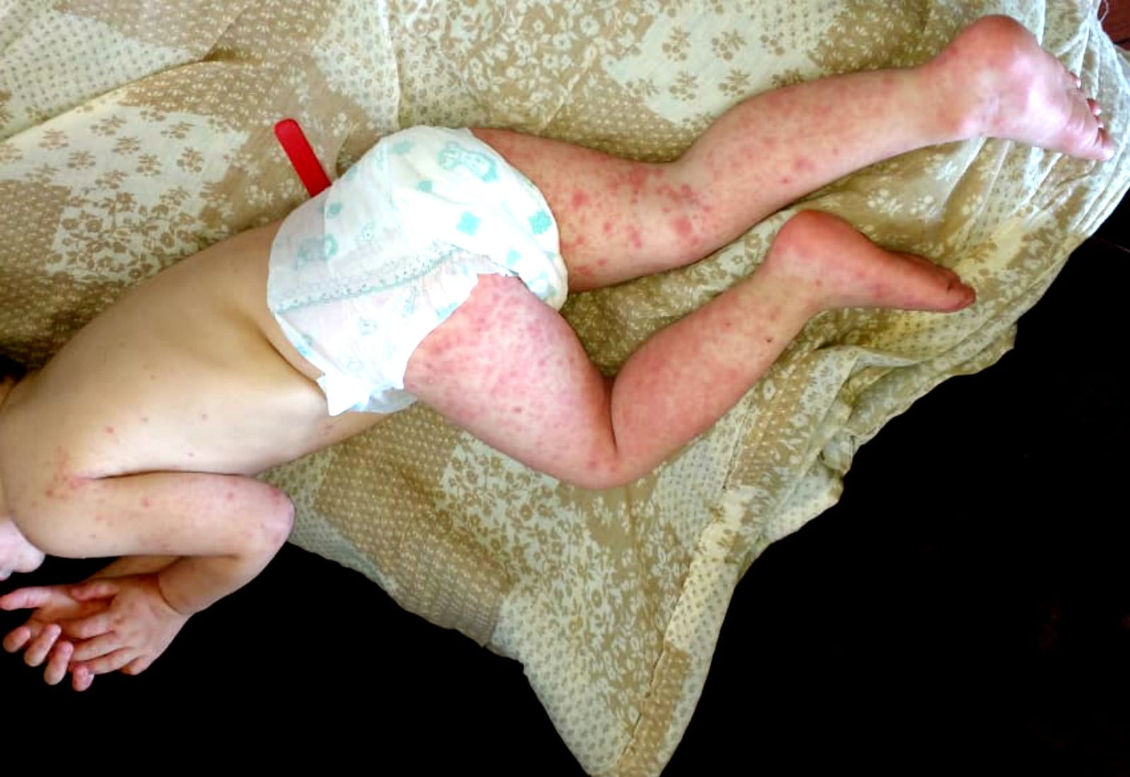 - Bebê com a síndrome ‘mão-pé-boca’ em Assis: manchas avermelhadas e febre alta são características da doença, altamente contagiosa (FOTO: Arquivo Pessoal/Reprodução AssisNews)
