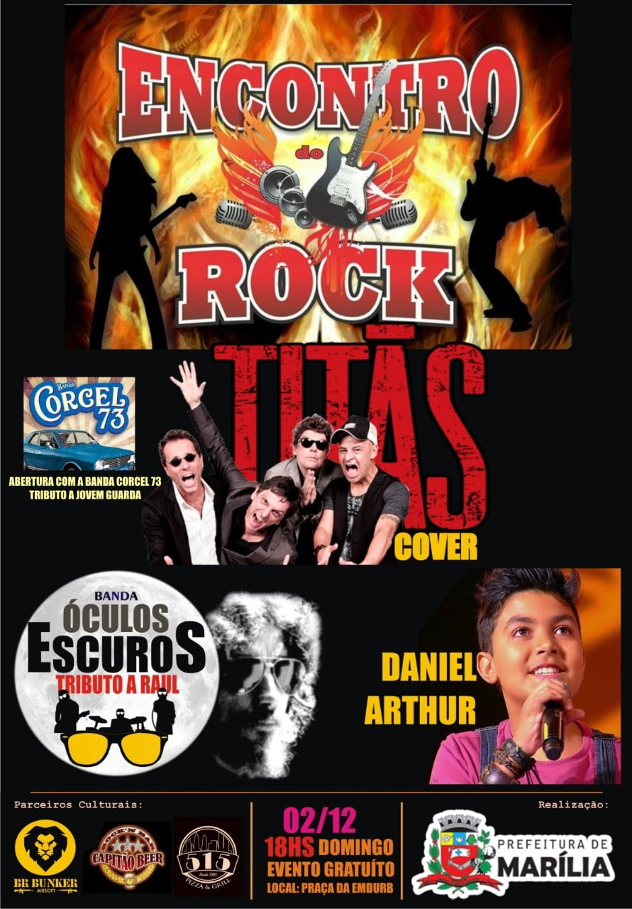 O domingo (2) será dedicado ao rock’n roll em Marília, com encontro especial de final de ano, que reunirá várias bandas e participação do cantor Daniel Arthur. E o melhor: tudo de graça, na Praça Higashi Hiroshima, a conhecida Praça da Emdurb, no início da Av. das Esmeraldas. O evento vai começar 18h e ganhar a noite.