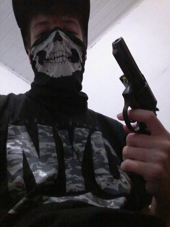- Guilherme postou foto com revólver e máscara usados no atentado, momentos antes da tragédia em Suzano (FOTO: Facebook/Reprodução)