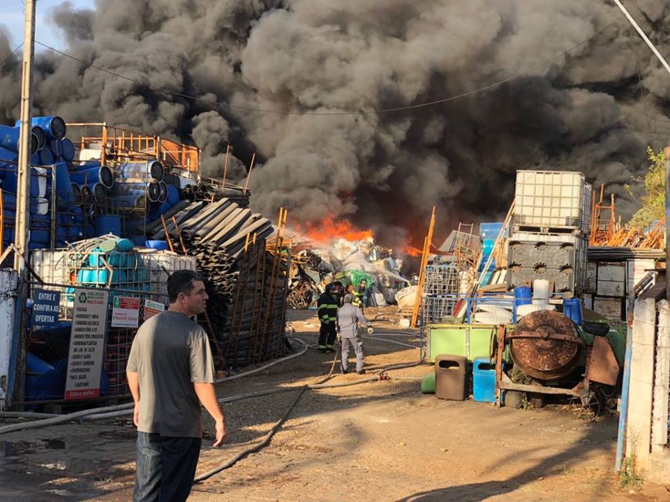 Um incêndio simplesmente assustador devastou depósito de materiais recicláveis na cidade de Botucatu, neste sábado (7). O fogo era tanto que exigiu a presença de várias equipes do Corpo de Bombeiros no local, inclusive do Resgate. Felizmente não houve vítimas.
