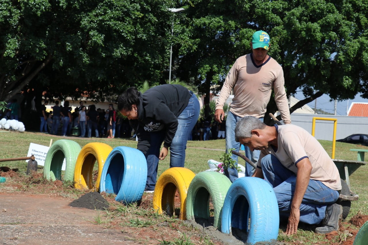 - Secretaria da Agricultura forneceu as mudas de árvores, pneus e tocos para revitalização da praça, na Zona Sul de Marília
