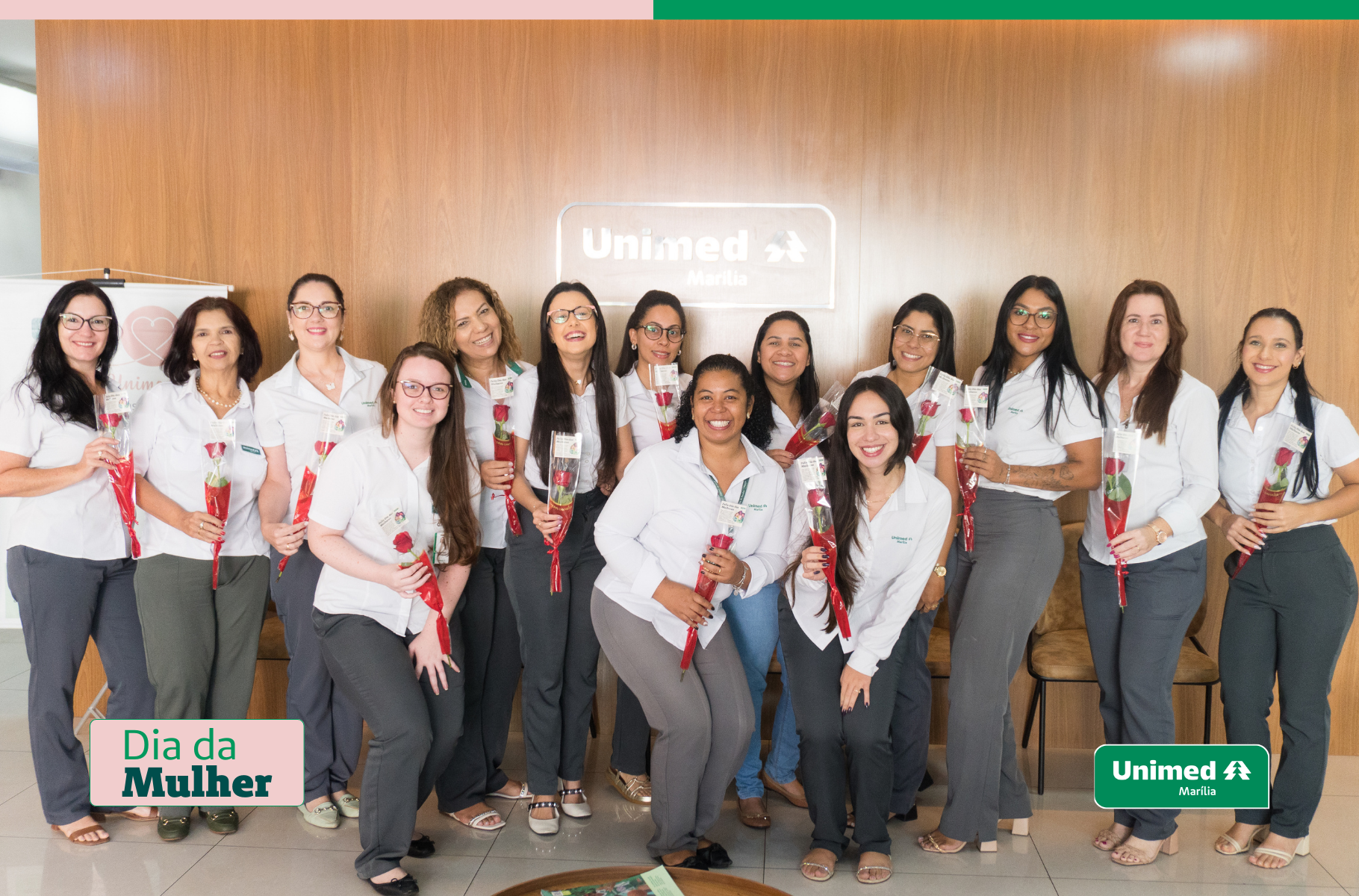 Como gesto simbólico de reconhecimento, cada colaboradora recebeu um botão de rosa, entregue como forma de agradecimento pela dedicação e pelo trabalho realizado no cotidiano da cooperativa. A homenagem foi realizada em todas as unidades da Unimed, alcançando também as equipes das cidades de Garça e Pompeia.