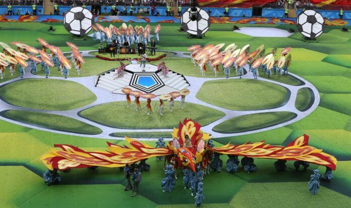 O público lotou o estádio de Lojniki, Moscou, para a cerimônia de abertura da Copa da Rússia, nesta 5.a feira (14). Simples e rápida (não durou mais do que 15 minutos), a cerimônia empolgou os presentes com apresentações do britânico Robbie Williams e da soprano russa Aida Garifullina. Foco principal foi exaltar a cultura e as riquezas do país-sede da Copa para o mundo.