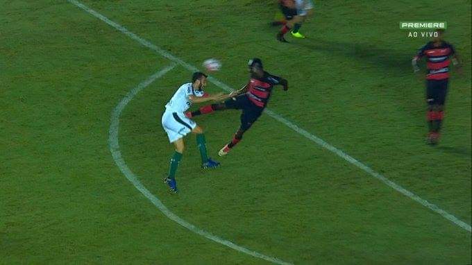 - Kanu acertou voadora em Edu Dracena, mas apesar do lance violento juiz não marcou nada (FOTO: Premiere/Reprodução)
