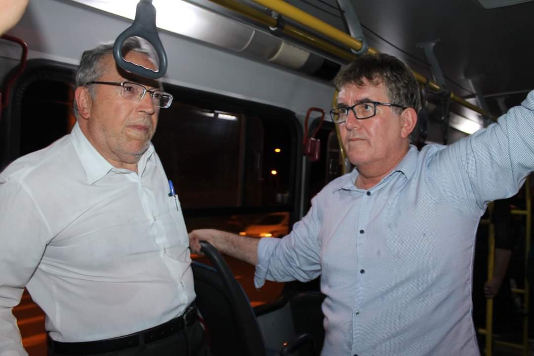 AUTORIDADES – Marcos estava acompanhado do presidente da Emdurb, Valdeci Fogaça, e o Promotor de Justiça do Consumidor, José Alfredo de Araújo Sant’Ana, que tinha prometido “andar de ônibus” para constatar a qualidade do serviço oferecido à população.