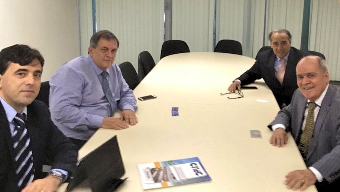 - Prof. Dr. Elvis Fusco e Dr. Luiz Carlos de Macedo, à frente, com representantes do Ministério da Ciência e Tecnologia (FOTO: Divulgação)