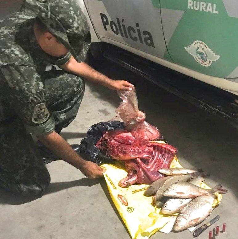 (FOTO: Polícia Ambiental/Divulgação – Os peixes e a carne de capivara apreendidos em Rosália)