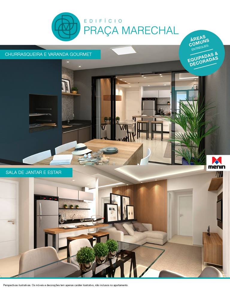 * Varanda gourmet, salão de festas, academia, piscinas adulto e infantil, playground, áreas comuns já equipadas e decoradas