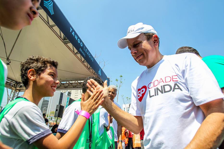(FOTO: Estadão/Reprodução – Doria com camiseta expondo slogan que levou à condenação dele por improbidade)