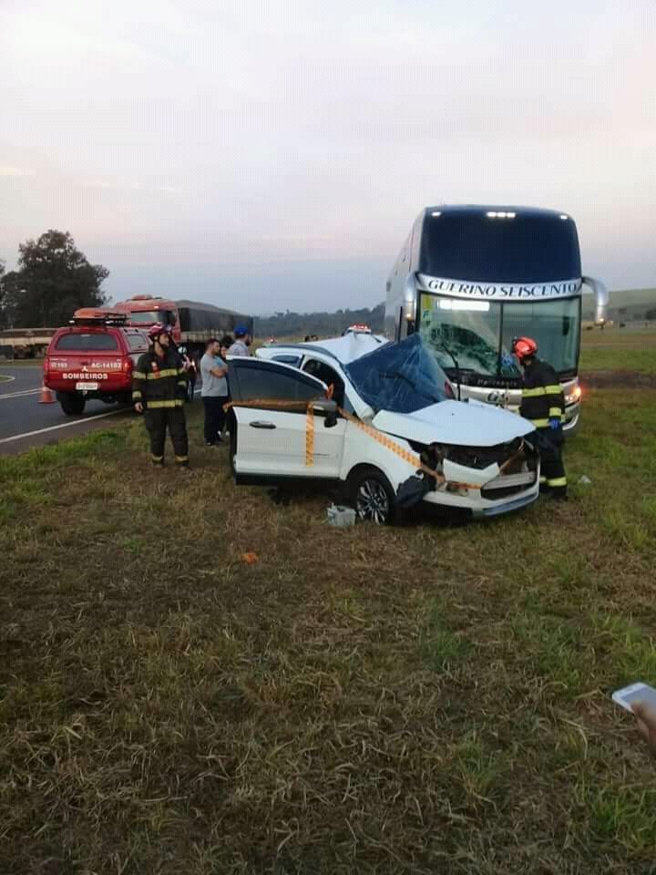 Um homem de 45 anos de idade morreu e duas outras pessoas ficaram gravemente feridas após colisão entre carro e ônibus da viação Guerino Seiscento em rodovia de Taciba, a 182 km de Marília, na região de Presidente Prudente. O Ecosport com placas de Osasco seguia sentido Paraná, quando bateu na lateral do ônibus, placas de Tupã, que cruzava a pista em rotatória em nível, na manhã do sábado (21).