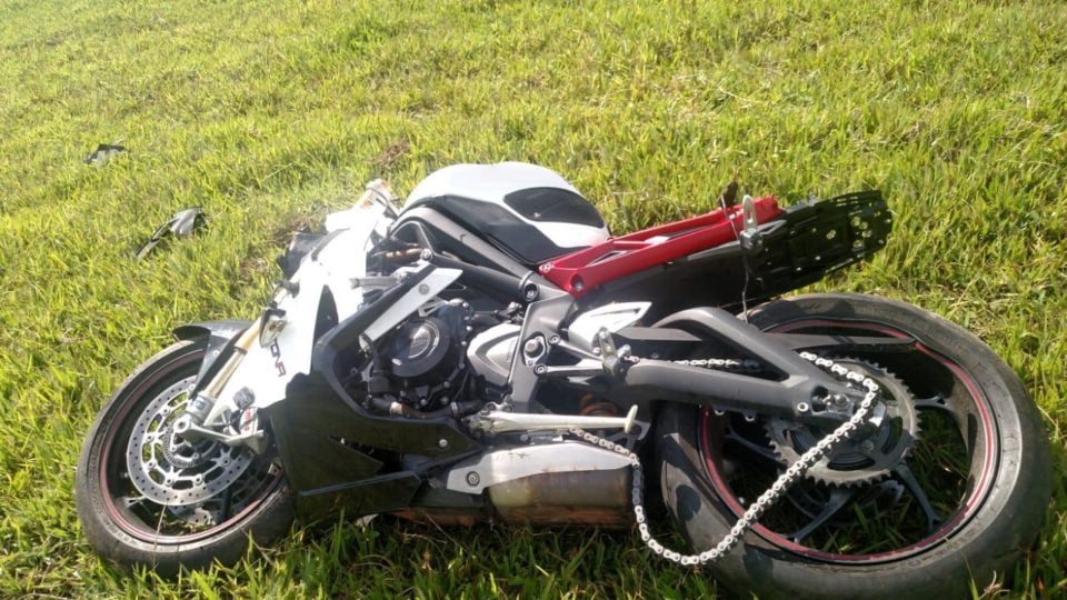 - Moto que o empresário conduzia foi parar no meio de uma pastagem, ao lado da SP 294, em Gália (FOTO: Arquivo Pessoal/Reprodução)