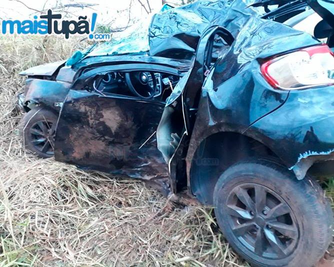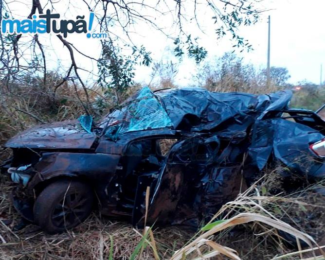 (FOTO e informações: Mais Tupã – O carro ficou destruído no acidente, que tirou a vida do jovem Alan)