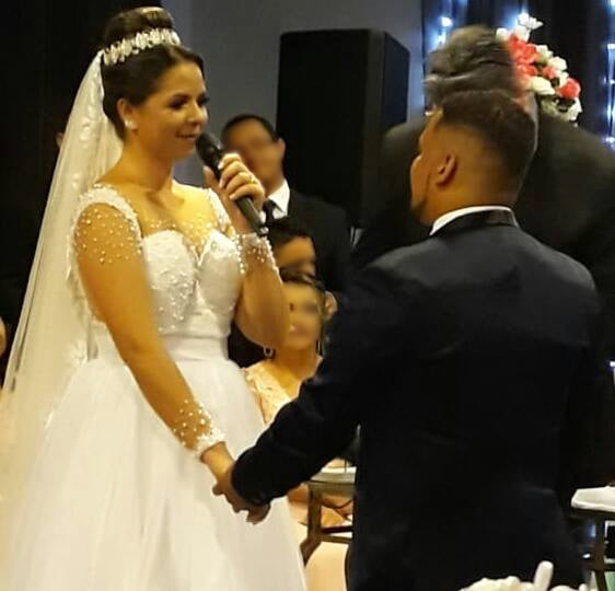 - O fotógrafo Luís e a esposa Regiane no casamento: casa furtada enquanto viajavam para a Lua de Mel – Até vestido de noiva alugado foi levado (FOTO: Arquivo Pessoal)