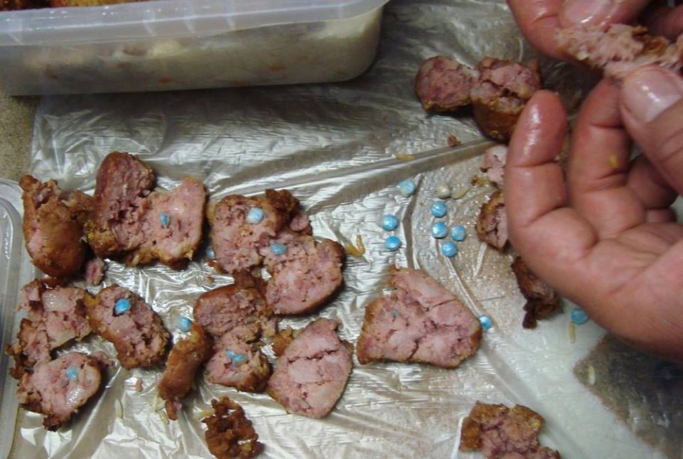 (FOTO: SAP/Divulgação – Comprimidos de Pramil em meio a gomos de linguiça: truque para levar produto a preso não funcionou)