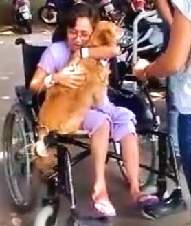 - Talma e Tiger: emoção e comoção no encontro autorizado pelo hospital (FOTOS: HCFamema/Divulgação)