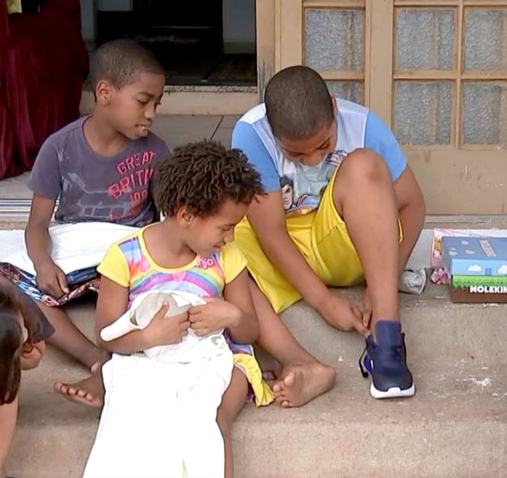 - Filhos de Simone ganharam presentes, inclusive tênis: felicidade no Natal (FOTO: TV Tem/Reprodução)