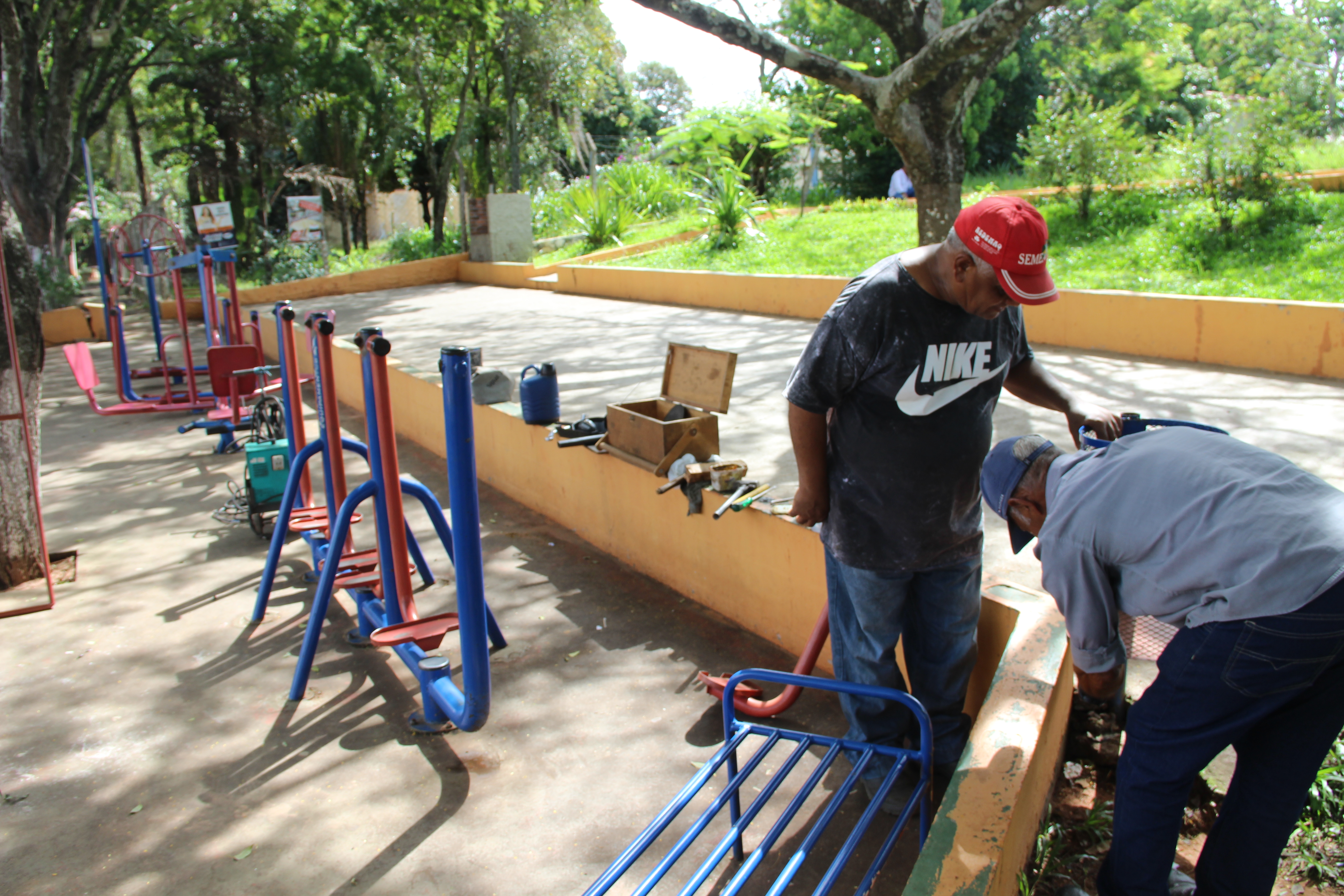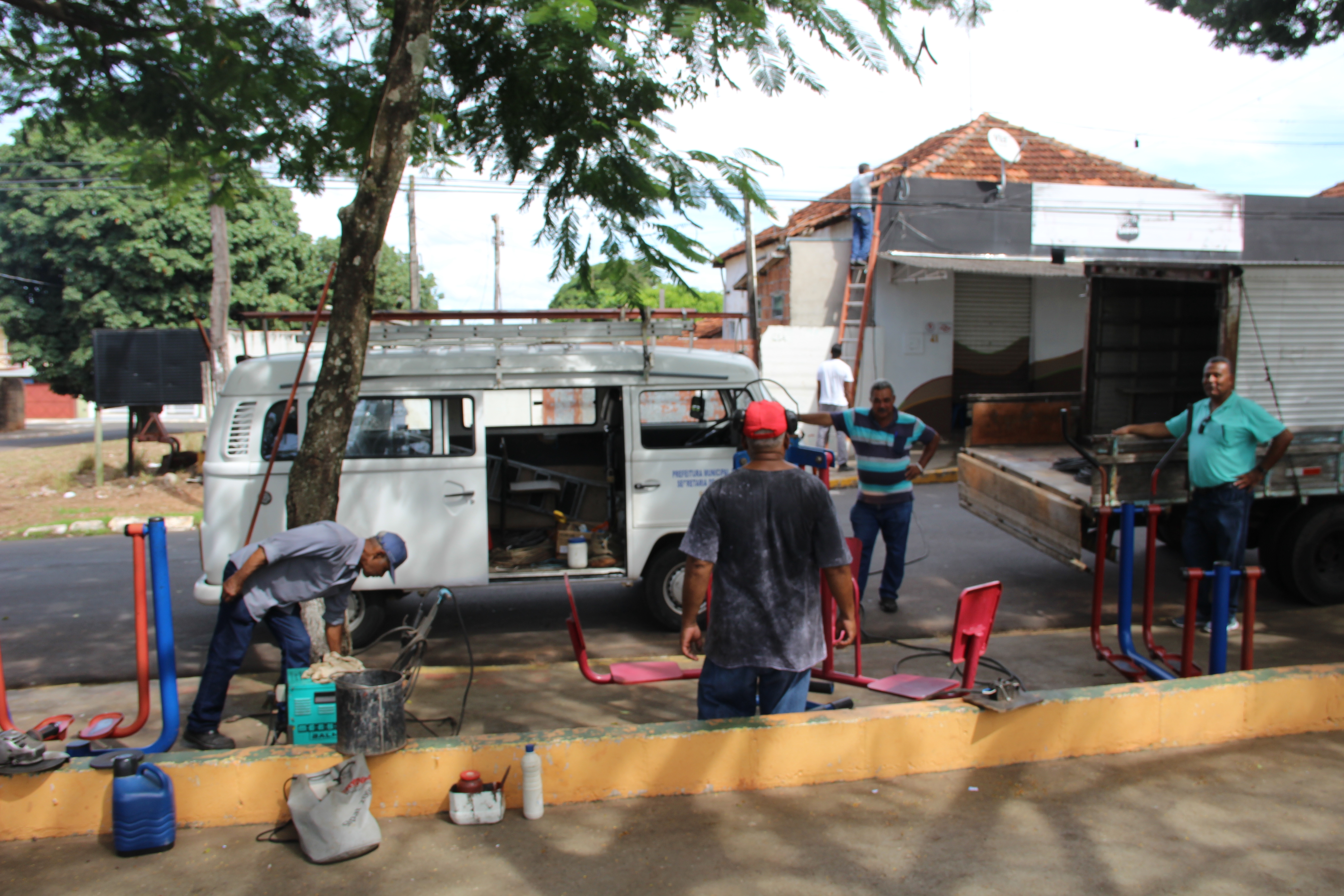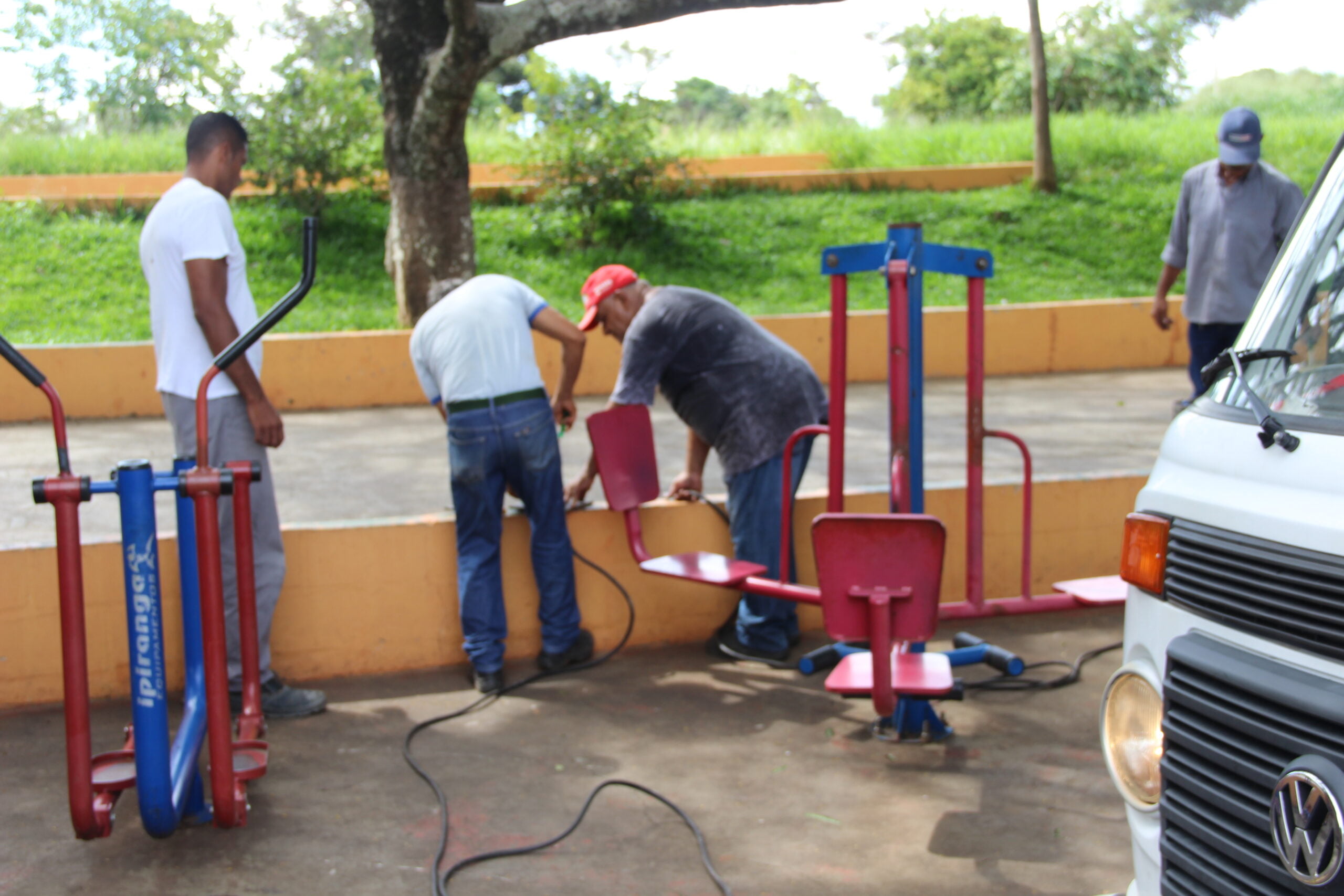 - Equipes Elétrica e de Serralheria da Secretaria de Obras trabalharam para recuperar academia ao ar livre em Lácio, após vandalismo (FOTO: HoraH)