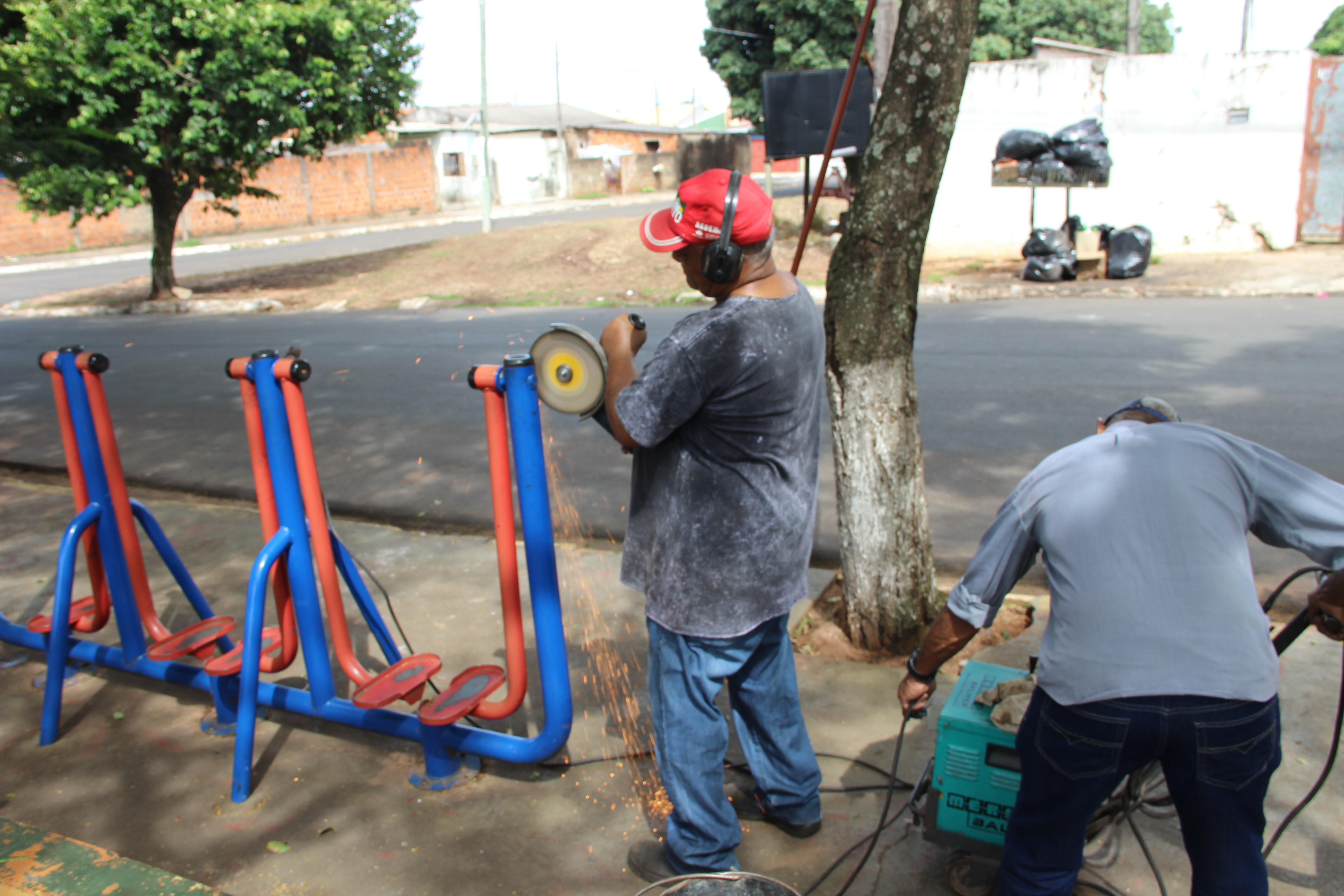 - Onde os danos deixaram pontas metálicas que ofereciam risco aos usuários da academia, funcionários lixaram e soldaram novos componentes (FOTO: HoraH)