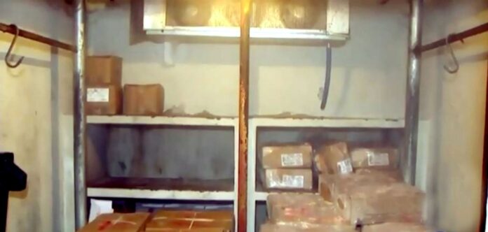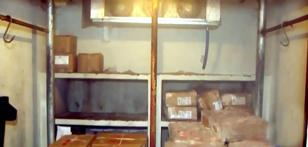 - Armazenamento da carne na câmara fria da Cozinha Piloto era inadequado e foi desativado pelo prefeito Daniel (FOTO: Reprodução TV Tem)