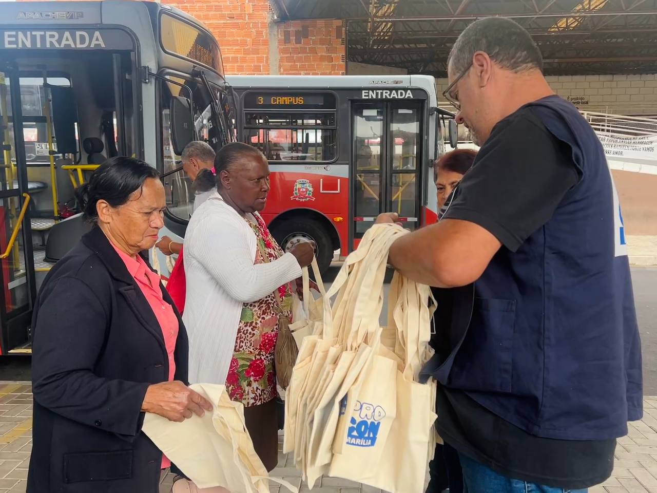 Por se um local de grande circulação, o Terminal Urbano foi escolhido para a ação de orientação nesse primeiro dia de vigor da lei. Ao mesmo tempo, o Procon Marília distribuiu sacolas retornáveis, reforçando a necessidade de conscientização da população sobre esse novo comportamento.
