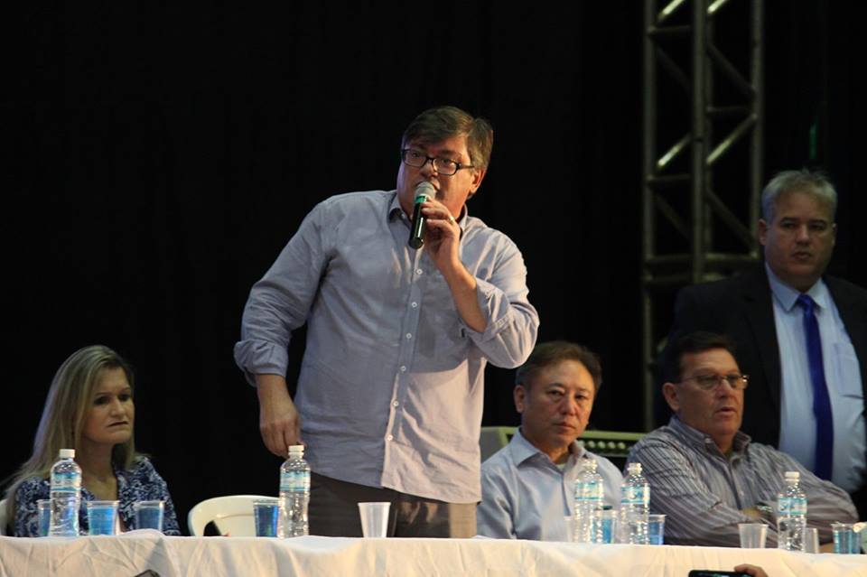 (FOTOS: Divulgação – Daniel, ao discursar na abertura dos Jogos, ao lado de convidados; a pira olímpica em Marília, depois de 24 anos; e os pavilhões na solenidade oficial)