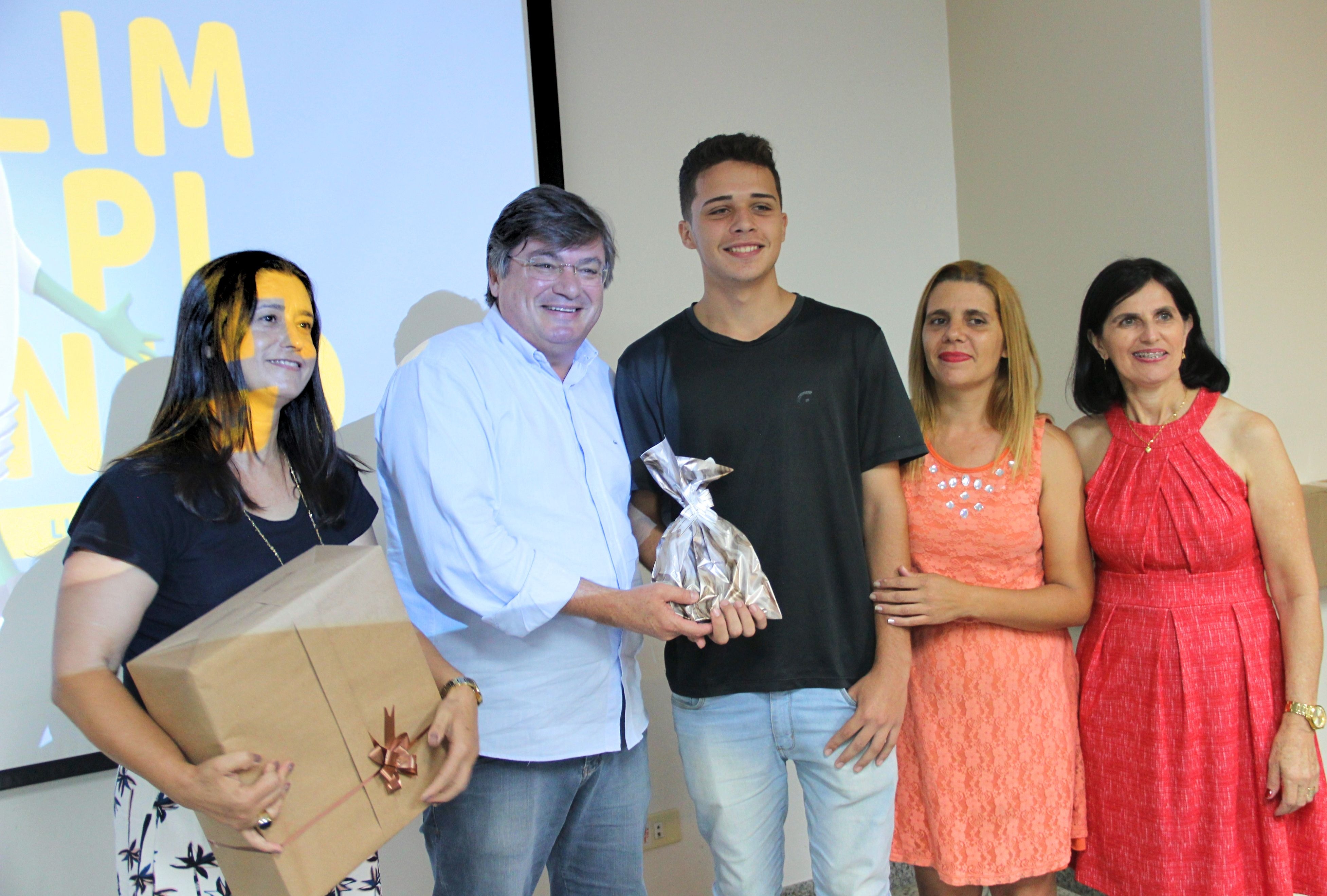 - O autor do desenho da mascote, a professora-orientadora e a escola foram premiados (FOTO: HoraH)