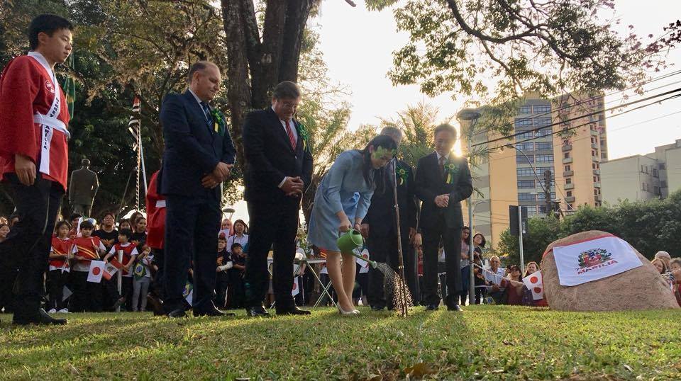 Representante da Família Imperial Japonesa, a princesa Mako cumpriu agenda oficial em Marília no domingo (22), esbanjando simpatia. Filha mais velha do príncipe Fumihito, Mako vestiu-se elegantemente e, ao mesmo tempo, com simplicidade, esteve no Teatro, onde assistiu apresentação de Taiko, e, no jardim do Paço Municipal, plantou um ipê amarelo (árvore símbolo de Marília) e descerrou placa comemorativa à visita. Em resumo, ela repetiu o feito do príncipe Mikasa em 1958, no cinquentenário da Imigração.