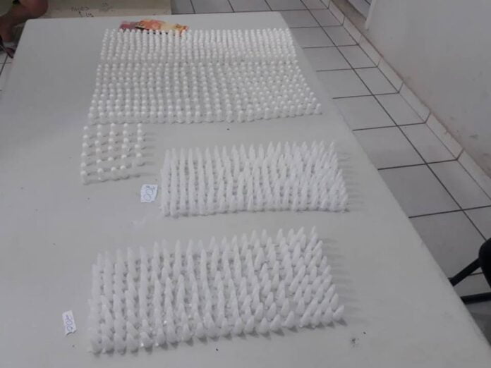 (FOTO: PM/Divulgação – A imensa quantidade de pinos de cocaína apreendidos na casa do traficante)