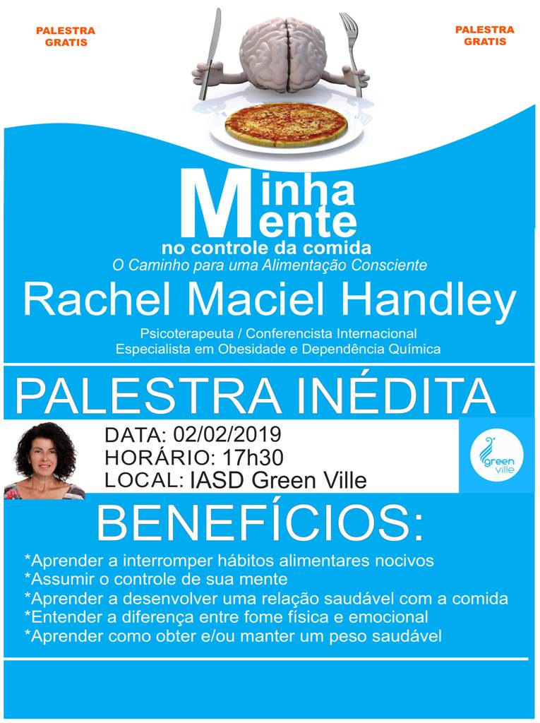 Rachel apresentará informações relevantes sobre os cuidados com a alimentação e a relação que ela tem com a qualidade de vida. Mais: dará dicas de como interromper hábitos alimentares nocivos, assumindo o controle da mente para desenvolver uma relação saudável com a comida. A conferencista também mostrará a diferença entre fome física e emocional e como obter e manter um peso ideal e saudável.