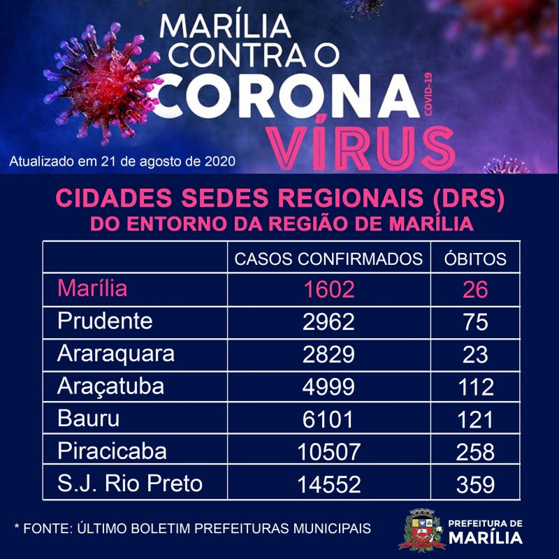 Rebaixada hoje (21) para fase laranja do Plano São Paulo de retomada da economia pelo Governo do Estado, Marília confirmou a 26ª morte causada pelo Covid-19 e o aumento de internações. A Secretaria da Saúde ainda investiga um óbito que pode ter sido causado pela doença,