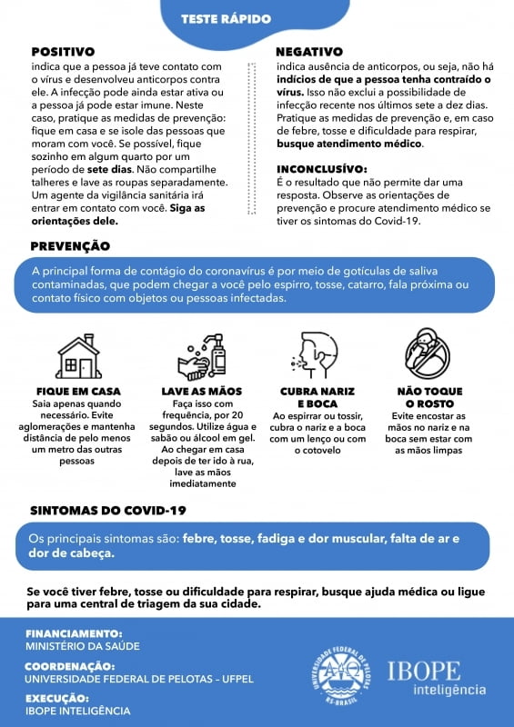 O morador da casa que for participar do estudo é sorteado, deverá assinar um termo de consentimento para participar da pesquisa, responder um questionário e na sequência é aplicado o teste rápido para o Coronavírus.