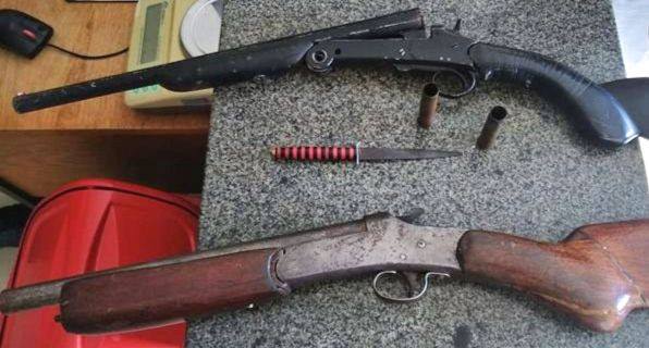 (FOTO: Polícia/Divulgação – As espingardas apreendidas pela PM: posse ilegal e ameaça)