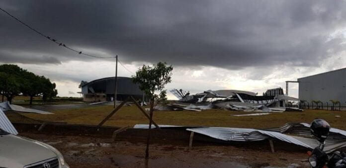 AEROPORTO – No aeroporto, 2 hangares foram fortemente atingidos pelo vendaval e um deles ficou destruído. Há informações de que choveu 40 mm e que a chuva durou cerca de 20 minutos. Placas de trânsito foram derrubadas, assim como postes de energia elétrica e muros, causando danos em ao menos um carro. A previsão é de mais chuva para esta 4ª feira (19).