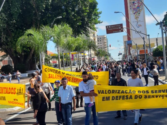 - Servidores parados nesta 4.a feira iniciam passeata pelas ruas e avenidas do centro de Marília (FOTO: Redes Sociais/Reprodução)