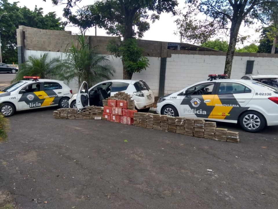 - Ka foi levado à base da Polícia Rodoviária e droga pesada: 337 kg distribuídos em centenas de tabletes de maconha (FOTO: Polícia Rodoviária/Divulgação)