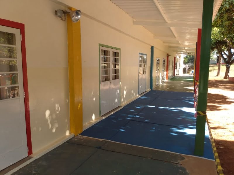 Durante a reforma da Emei, foi realizada a troca de toda cobertura, pintura geral, construção de muro, muretas e colocação de gradil e construção de canaletas de águas fluviais.