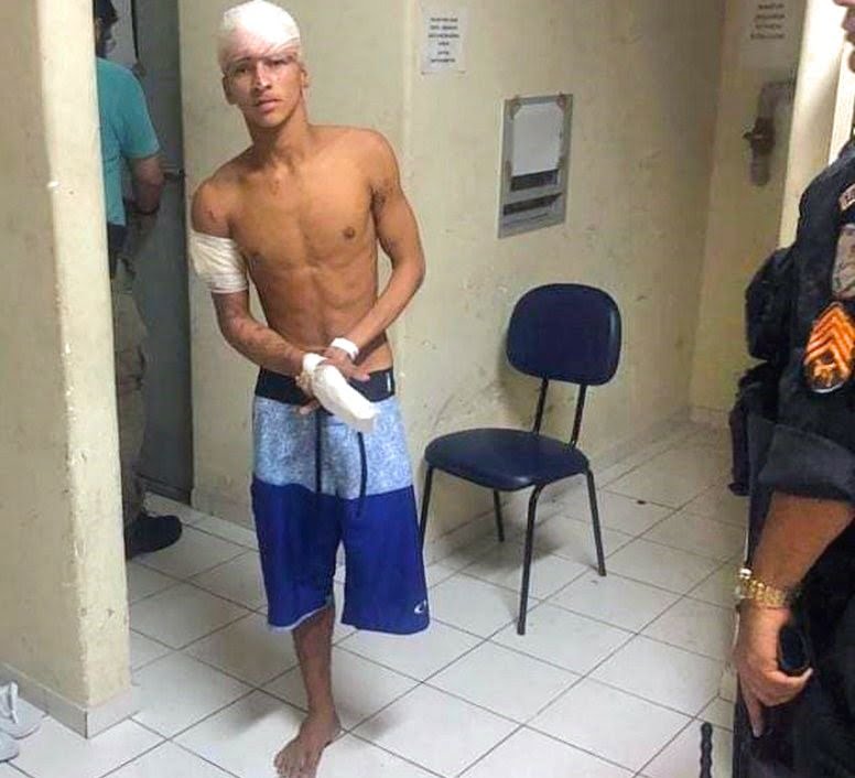 - Baleado, ‘Saci do Crime’ passou por atendimento médico e, depois, foi levado à polícia (FOTO: PMERJ/Divulgação)