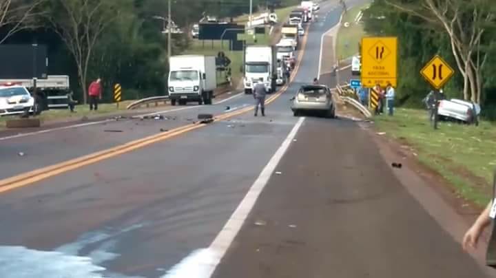 Uma VW Saveiro não conseguiu frear e, para desviar do caminhão, bateu em uma árvore nas margens da estrada. Há ainda informação de um quarto veículo, outro caminhão, que também acabou no acostamento para não colidir com os demais já acidentados.