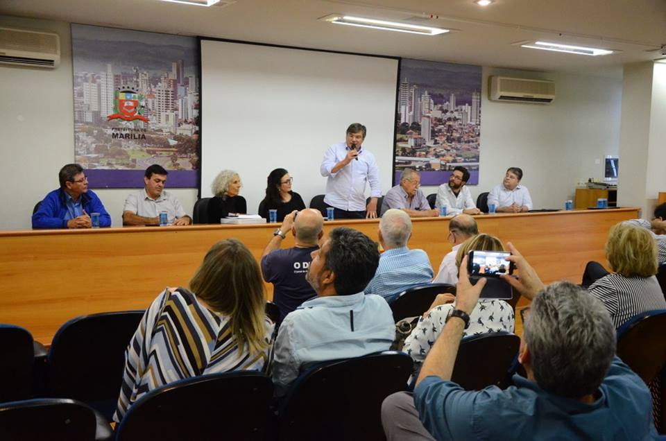 O prefeito Daniel Alonso assinou a escritura de posse definitiva da área de 56,2 mil m2 na Via Expressa, onde será construída a unidade do Sesc Marília. Solenidade foi no gabinete, nesta 5ª feira (23). Desse total, 21 mil m2 serão ocupados com construções e o restante destinado a áreas de preservação – o terreno fica em frente ao vale existente no local, bem perto do Centro.