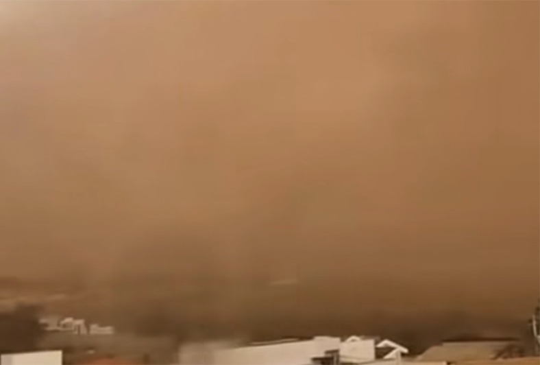 A cidade e região, foi surpreendida por uma tempestade de poeira, causada pela combinação da seca e dos ventos e chuvas da chegada de uma frente fria.