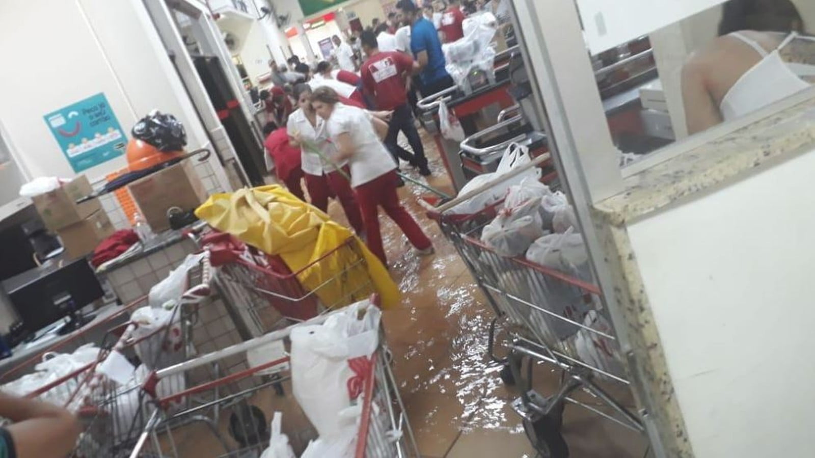 - Água subiu rapidamente e alagou supermercado (FOTO: Arquivo Pessoal/Reprodução)