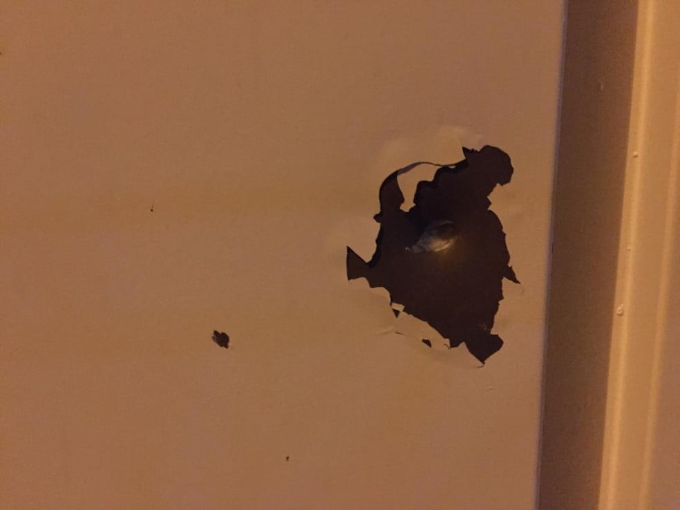 - Marcas dos tiros de espingarda ficaram na porta da casa da vítima (FOTOS: Bariri Rádio Clube/Reprodução)