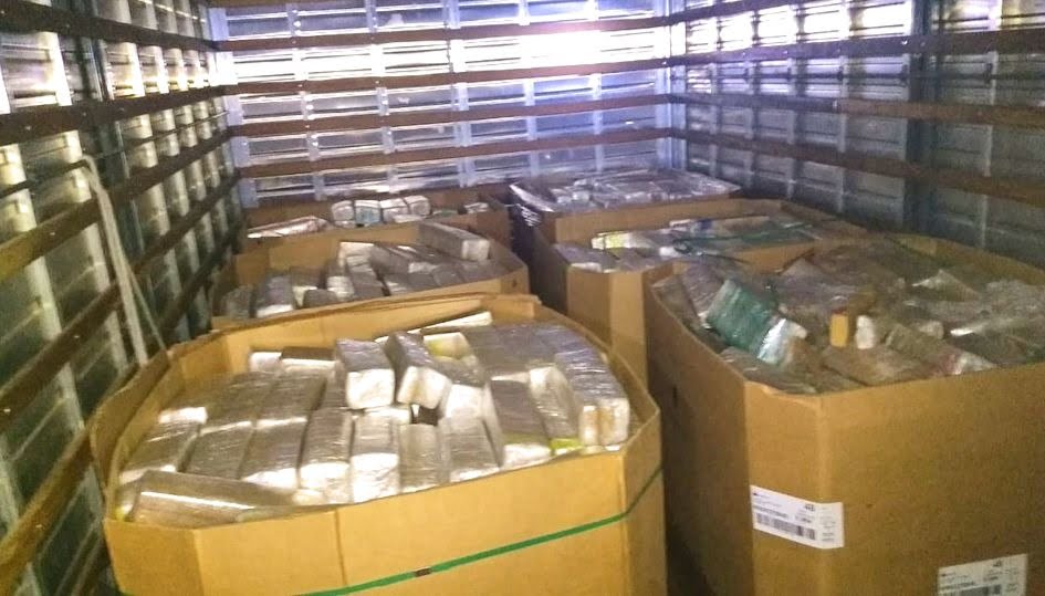 - Carregamento com 2 ton. de maconha encontrado no baú do caminhão (FOTO: Polícia/Birigui)