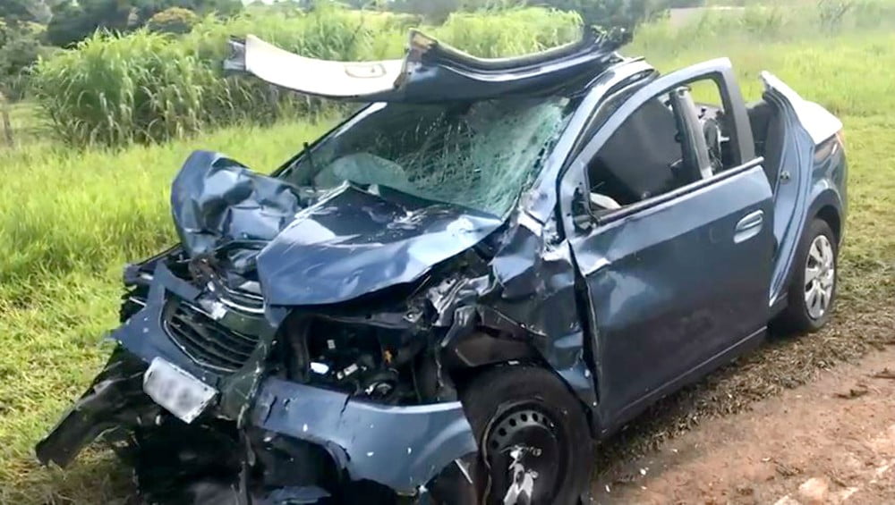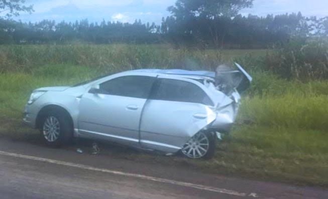- O GM Cobalt aquaplanou e, sem direção, invadiu a pista contrária, sendo atingido na traseira pelo Prisma (FOTO: Reprodução HoraH)