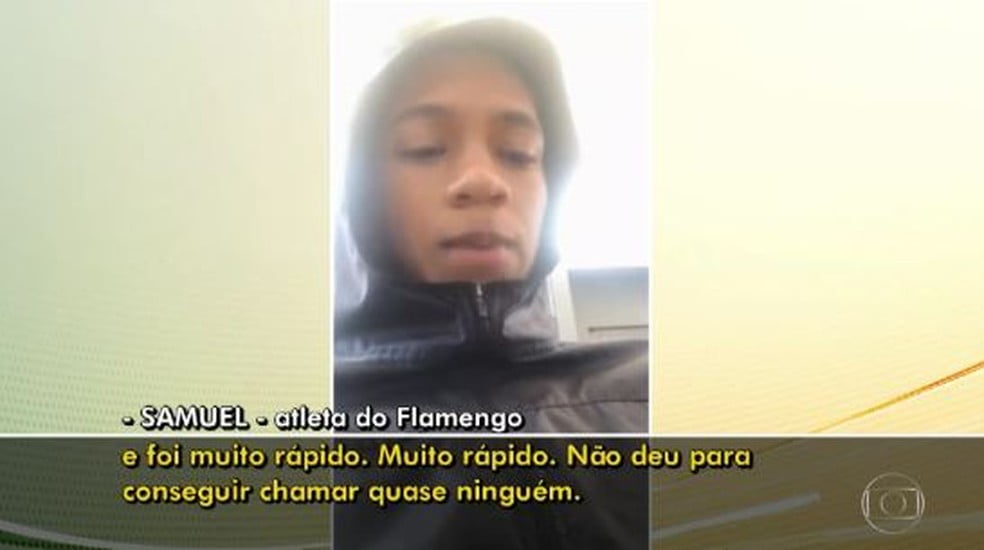 “A quantidade de fogo era muita”, contou um dos atletas do Flamengo que sobreviveu ao incêndio, Samuel. “A maioria não conseguiu sair. Aconteceu que o ar-condicionado pegou fogo, daí foi gerando um curto-circuito em todos os ares-condicionados”, disse. “Não deu pra conseguir chamar quase ninguém”.