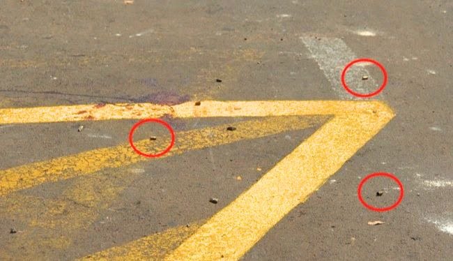- Capsulas deflagradas no tiroteio ficaram espalhadas pelo asfalto (FOTO: Portal Ternura FM/Reprodução)